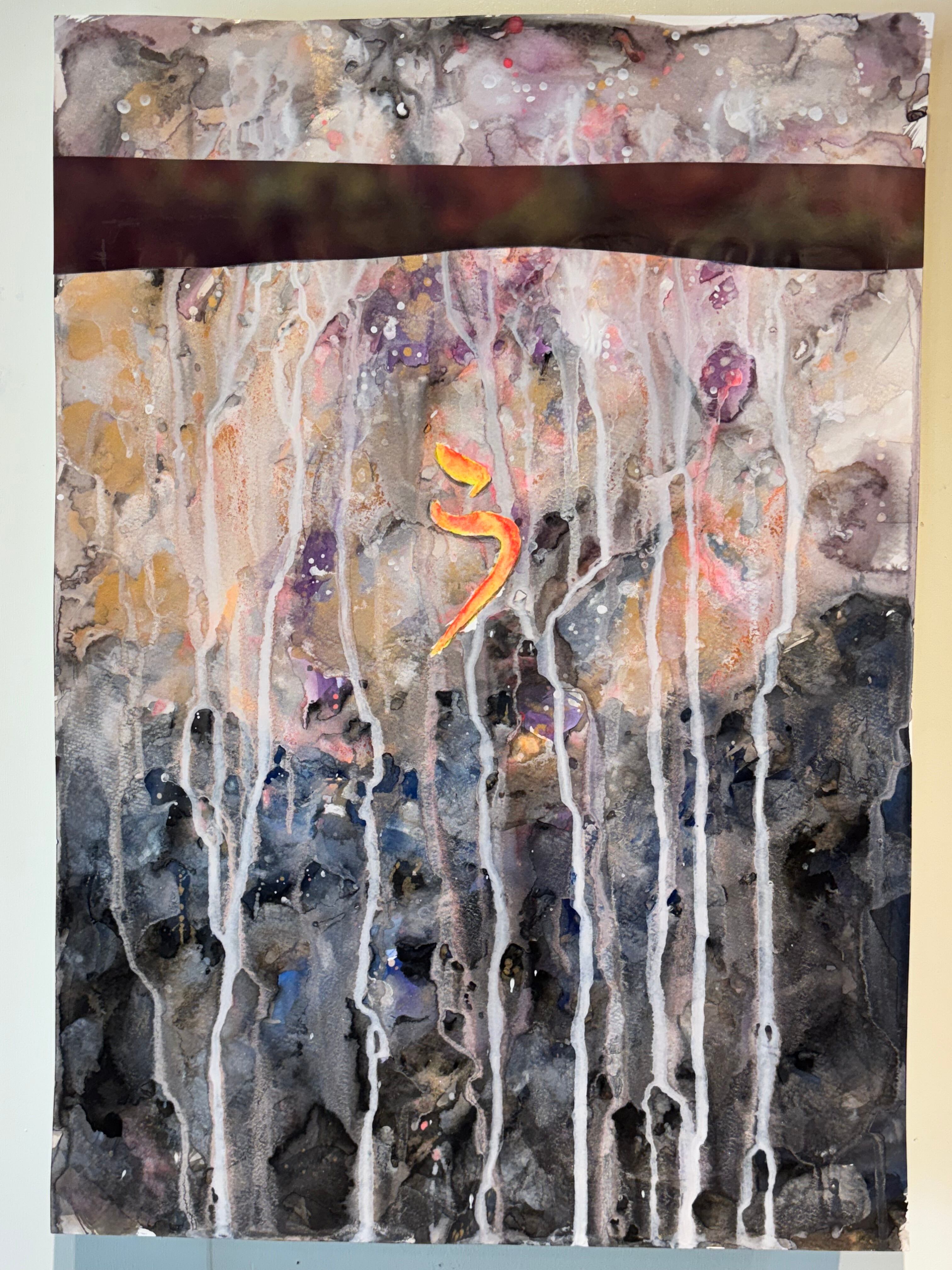 【 う 】 「う」は、言葉の力を象徴する特別な存在です。言葉のエネルギーを感じ取りってください。 [素材] 紙にアクリル絵の具、印刷物 38,7x54.0 cm